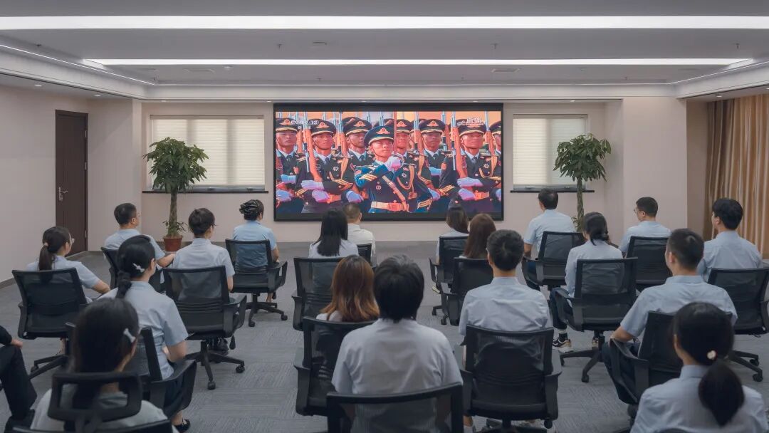 今天(9月3日)纪念中国人民抗日战争暨世界反法西斯战争胜利80周年大会在北京天安门广场隆重举行。丽申药业在会议室组织集体观看活动。2025-09-03